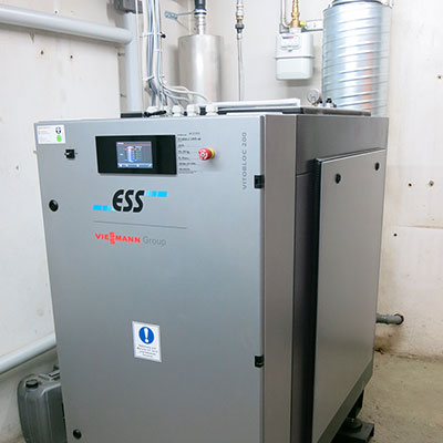Wir bieten den Einbau von effizienten Lösungen nach dem Prinzip der Kraft-Wärme-Kopplung (KWK) an, hierzu zählen unter anderem Brennstoffzellen-Heizgeräte sowie Blockheizkraftwerke (BHKW).